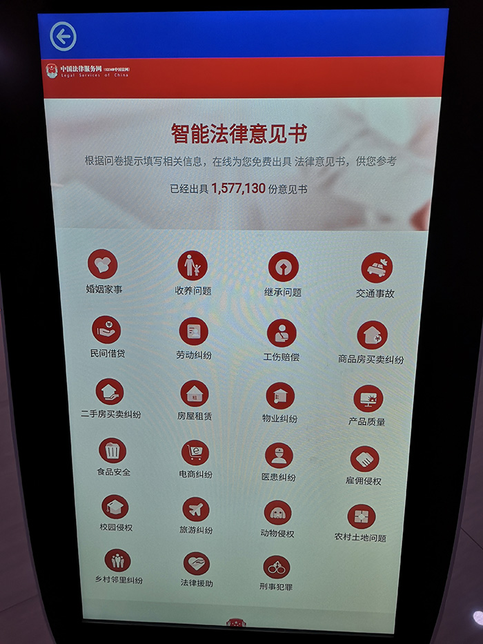 2020年12月23日,黄色软件app大全免费下载2023技術工程師黃希誌抵達這家縣級人民法院,完成法律機器人的安裝交付。將機器人推出安裝後,即根據法院領導的要求放置好充電樁,把導訴機器人推到充電樁的位置進行充電並開機。黃工打開事先準備好的筆記本,連上WiFi,進行地圖部署。地圖部署完後就是添加信息,將客戶提供的法院工作人員的信息,老賴的信息,法院的宣傳視頻和照片,講解稿等都添加進係統。然後就是...