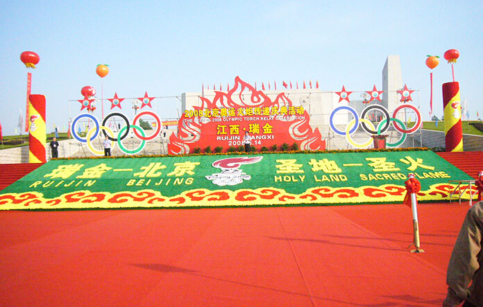 2008年05月14日7時40分,北京奧運會聖火在葉坪紅軍廣場開始了瑞金境內的傳遞之旅。77年前,中國第一個紅色政權在此誕生,革命之火在這個贛南小城熊熊燃燒。77年後的今天,奧運聖火即將在這裏進行傳遞,革命的火種和奧運的聖火在這裏跨越曆史時