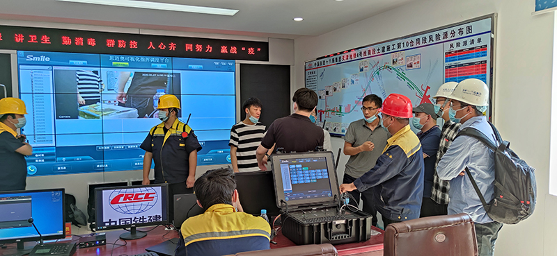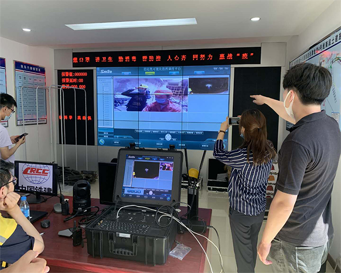 所有的現場險情探測信息均可傳輸終端為應急指揮箱,無線指揮箱部署在項目指揮中心,接上便攜組網節點,打開可視化指揮調度軟件平台,可查看地下隧道安全帽及無人車傳回的實時畫麵,無線對講,進行應急搶險工作的安排及調度指揮。