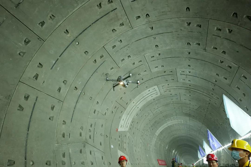 無人機在盾構隧道內最大測試飛行和通訊傳輸距離為300米,可以多角度全方位避障,定製化的探照燈、喊話器及夜航燈,擴展作業功能,讓應急搶險任務更高效。