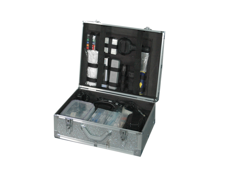 1. 可充電白光手電1個 2. 照明放大鏡1個 3. 微型顯微鏡1個 4. 射擊殘留物取樣盒4個 5. 圓頭鋼鑷子1把 6. 尖頭鋼鑷子1把 7. 木鑷子1把 8. 牙簽1袋 9. 藥勺3把 10. 手術刀柄1把 11. 手術刀片1包 12. 毛刷10把 13. 扁鏟1把 14. 磁棒1把 15. 膠帶1卷 16. 剪子1把 17. 多功能鉗1把 18. 組合旋具1把 19. 定性濾紙1盒 20. 紗布1包 21. 脫脂棉1包 22. 棉簽1盒 23. 無水乙醇瓶1個 | 24. 一次性注射器5支 25. 帶蓋塑料試管10支 26. 離心管10支 27. 物證瓶6個 28. 蓋玻片10片 29. 載玻片10片 30. 小號塑料物證袋10個 31. 5號紙物證袋10個 32. 硫酸紙物證袋10個 33. 黑色記號筆1個 34. 紅色記號筆1個 35. 不幹膠比例尺本1本 36. 大號不幹膠數字本1本 37. 汗布手套2付 38. 一次性塑料手套1袋 39. 一次性鞋套4雙 40. 一次性帽子5個 41. 一次性口罩5個 42. 微小物證吸取器1套 43. 微小物證吸頭5個 44. 過濾網20個 45. 鋁合金箱1個 46. 吸取器供電電池1個 |